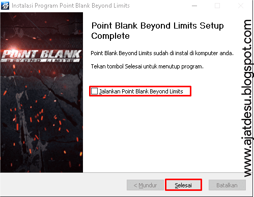 - Jika instalasi telah selesai, uncheck Jalankan Point Blank Beyond Limits karena akan mengatur Manual Patchs terlebih dahulu, kemudian klik Selesai.