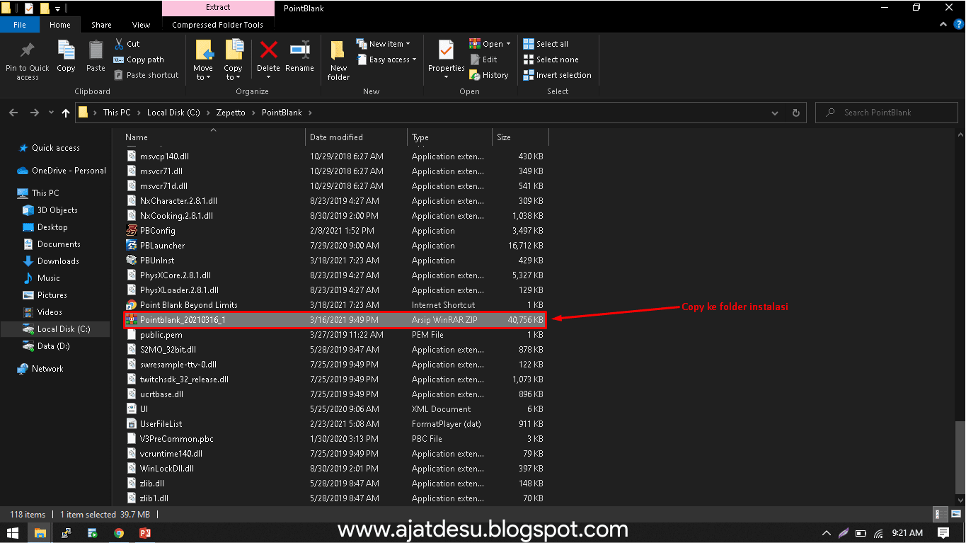 - Kemudian Copy file Manual Patchs ke direktori instalasi Point Blank atau bisa juga kalian Extract file secara langsung ke Folder Point Blank, tetapi disini saya menggunakan cara copy file Manual Patchs supaya mudah difahami